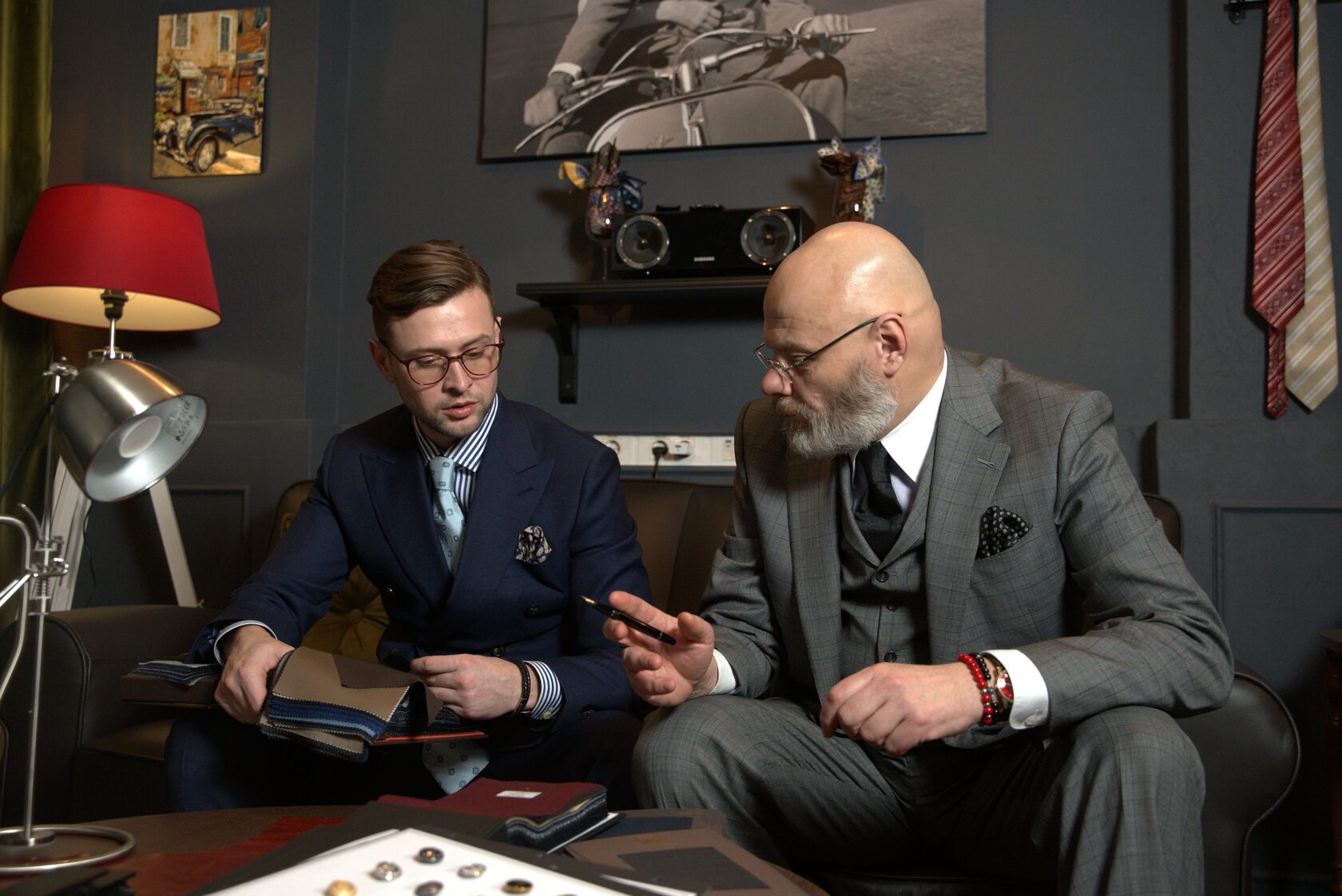 Человек, знакомый с культурой индивидуального пошива, может на глаз определить качество вашего костюма. Костюм, сшитый по меркам, превосходно садится на фигуру, делая вас элегантным. Покупая костюм в магазине, вы рискуете быть похожим на водителя или охранника ювелирного магазина.